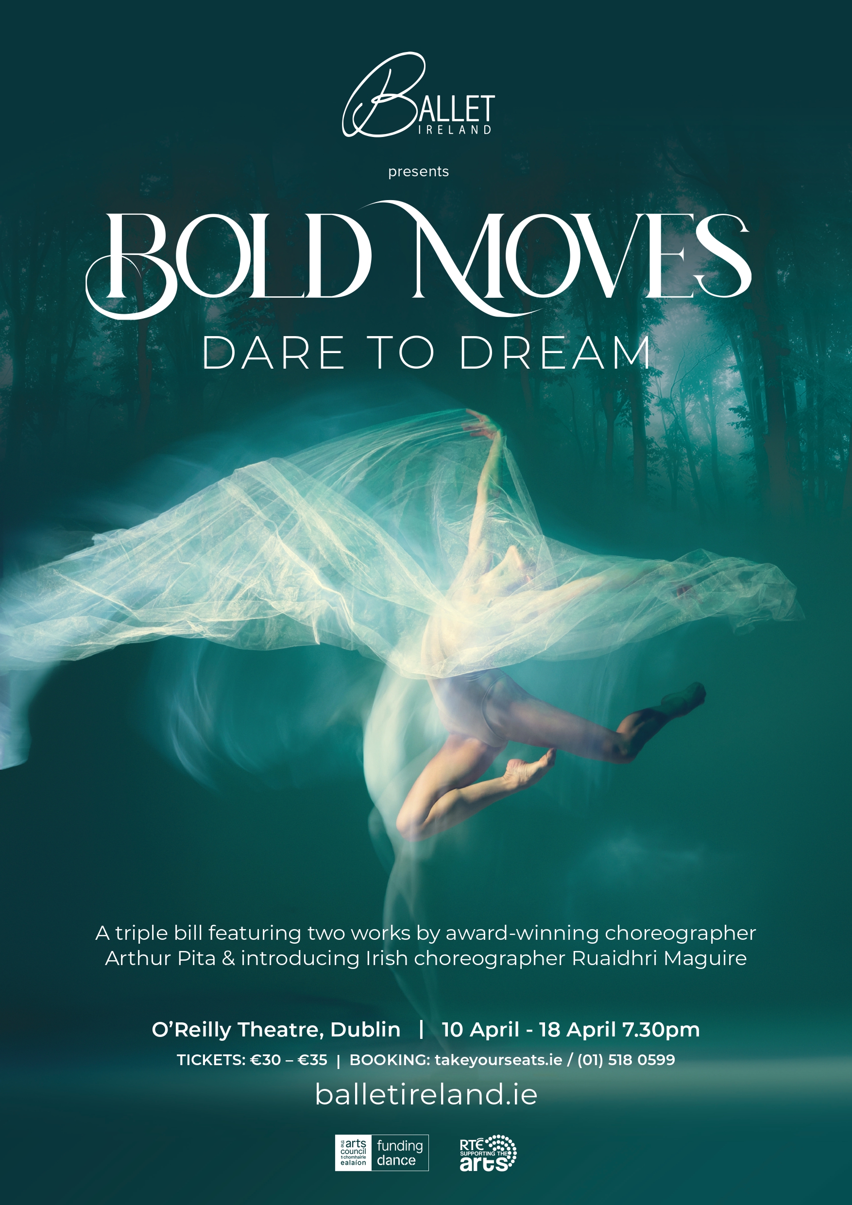 This April, Ballet Ireland electrifies the O’Reilly Theatre, Dublin with a thrilling triple-bill packed with imagination, drama and daring movement. The programme features two striking works by award-winning choreographer Arthur Pita alongside a world premiere by Irish choreographer Ruaidhri Maguire.