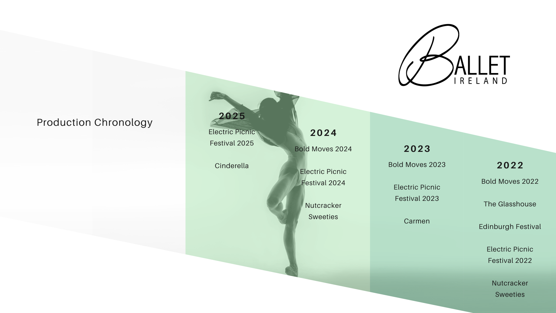 Anne returned to Ireland in 1997 to found Ballet Ireland, which she continues to develop as a successful and vibrant national touring company. She also founded Irish Ballet Forum, a resource organisation that provides master classes, intensive courses and information for Ireland’s aspiring young dancers.